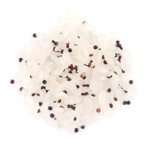 Delicate shushi rice is blended with spinkles of black quinoa....