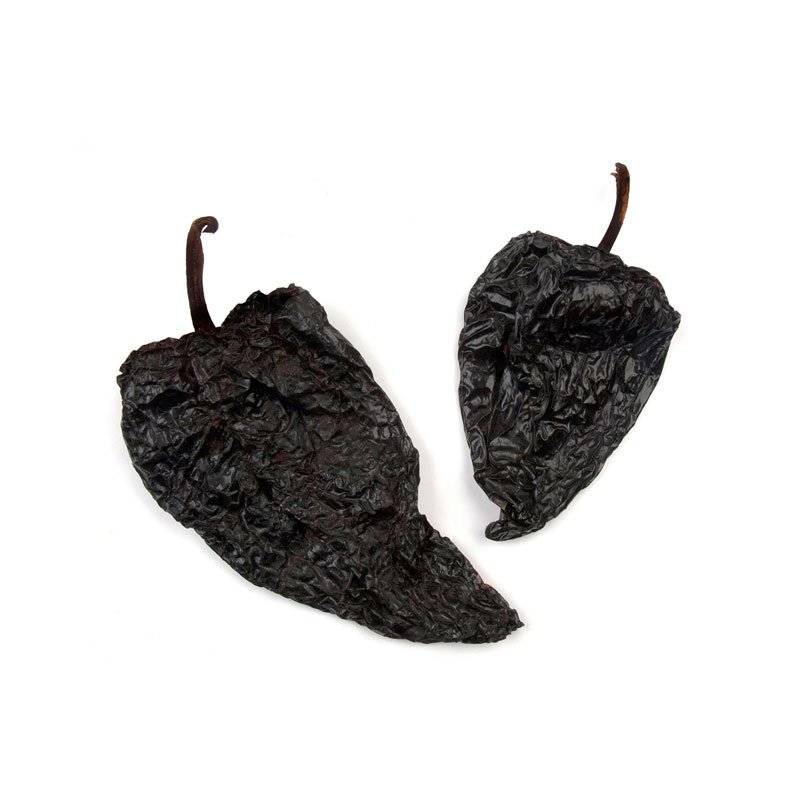 These whole dried peppers have a medium heat, and are full in flavour. An earthy, mildly fruity flavour, with a hint of coffee make up its taste. Its colour ranges from red to purple to brown and a range of 500 to 3000 on the scoville heat scale.