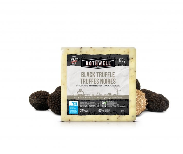 Black Summer Truffle is a Monterey Jack cheese that is blended with black truffle pieces to create an earthy, complex flavour with a rich smooth finish.