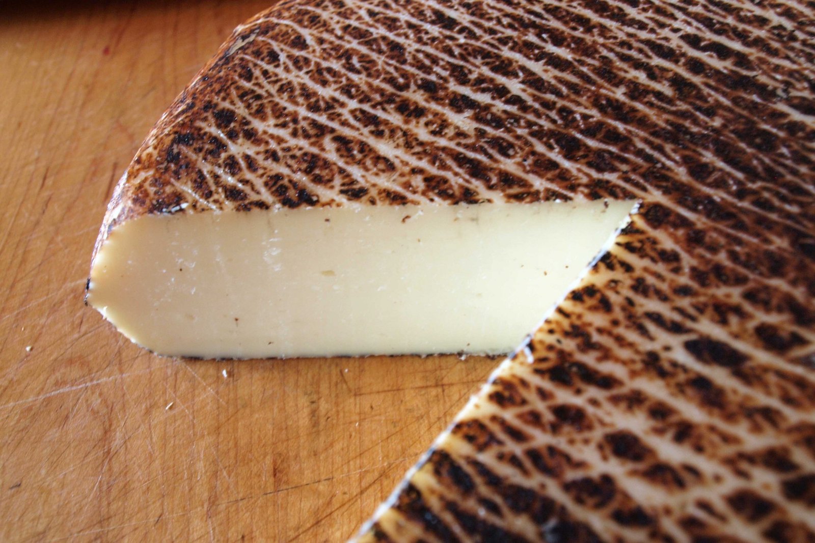Bonnechere is a semi-firm, pale yellow cheese with a textured mahogany rind. Moderately long finish with flavours of citrus and slightly sour hickory smoke.