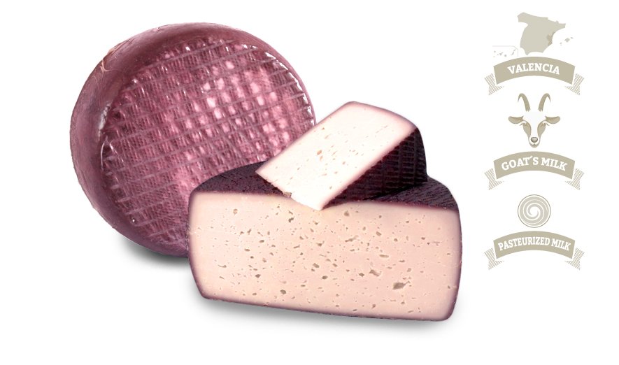 This semi-firm cheese is made from goat milk. Its reddish purple rind beautifully contrasts its white interior making it eye catching on any cheese board. Pair with a bold Spanish red wine.