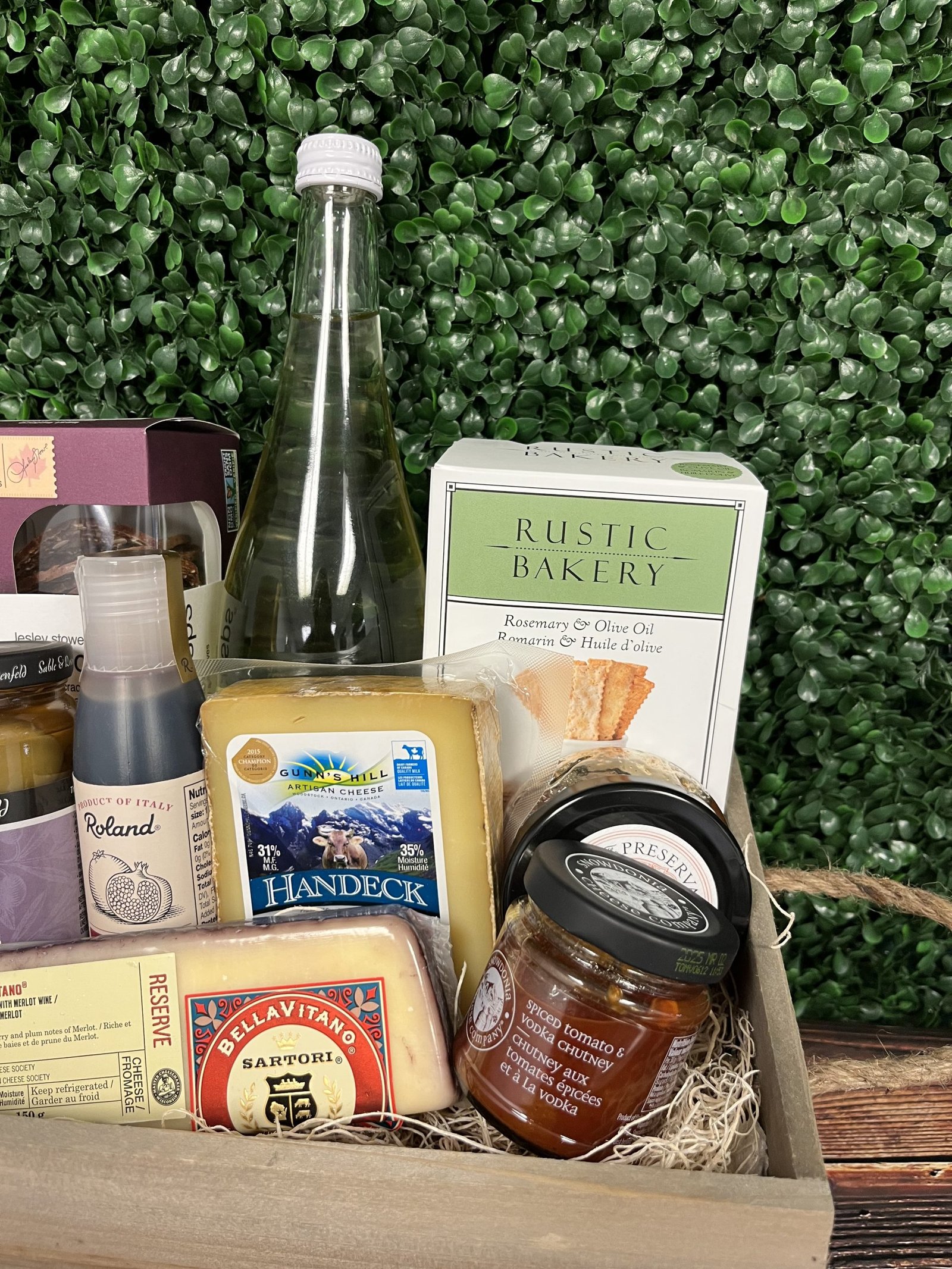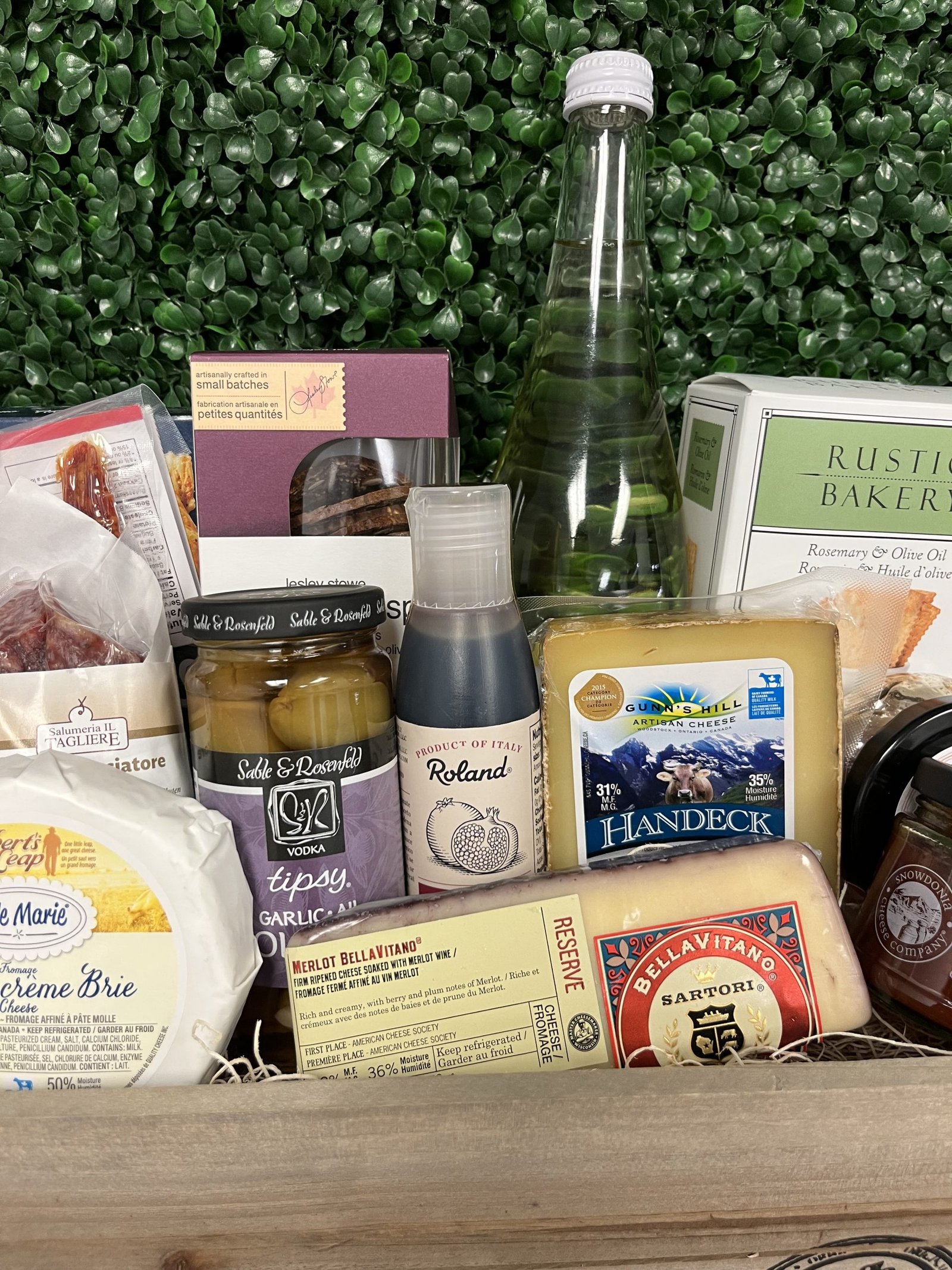 Looking for a perfect gift? Look no further than a customized gift basket from Ultrafoods! Our medium basket hosts perfect items to build a beautiful charcuterie board with premium products ! Check out our gift basket add-ons on our “gift basket page” on the website to ensure your basket has everything you want!