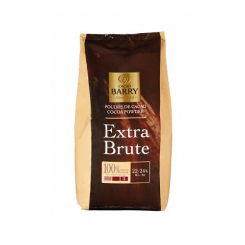 Cacoa Barry Extra Brute 100% pure cocoa powder (Very dark, 22/24% fat cocoa.) the intense flavour makes it a good choice for brownies, cookies and some chocolate cakes. When natural cocoa (acidic) is used in recipes calling for baking soda (alkali), it creates a leavening action that causes the batter to rise when it is introduced to heat (oven).