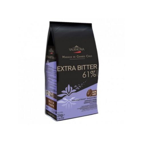 The extra bitter recipe contains 66% cocoa. The chocoate has an intense but balanced cocoa flavour making it powerful and bitter.