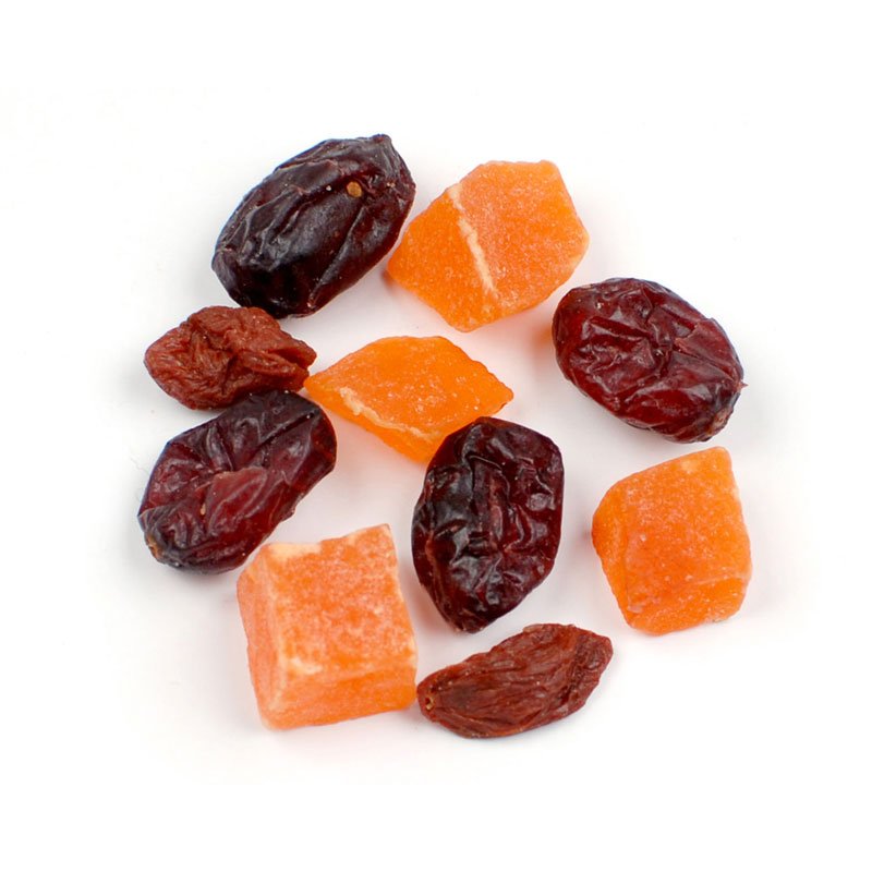 Mixed Dried Fruit is a colourful mix consisting of a vriety of beautifully dried fruits. Typically, prunes, apricots, mango, cherries, peaches and kiwi.