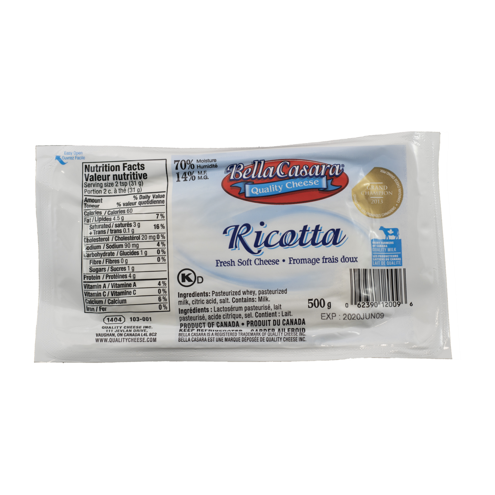 Ricotta is creamy, moist and soft in texture. It has a mild and slightly sweet flavour, that is high in protein but low in fat. The cheese gets it name ricotta meaning “re-cooked” as traditionally ricotta was made from the whey that remained after making cheeses such as mozzarella and provolone.