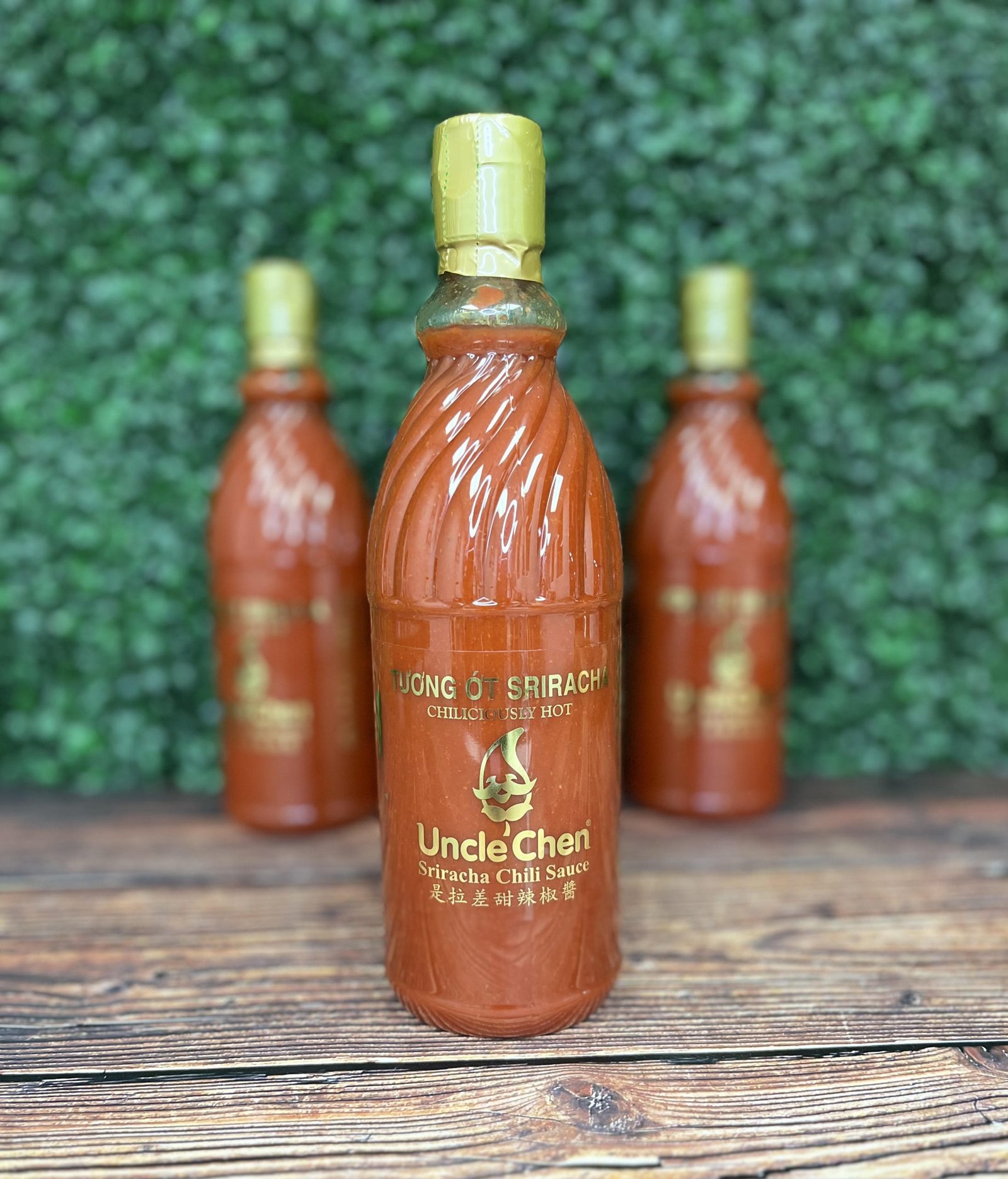 Sriracha is made from sun ripened chilies, they are ground into a smooth paste with garlic.